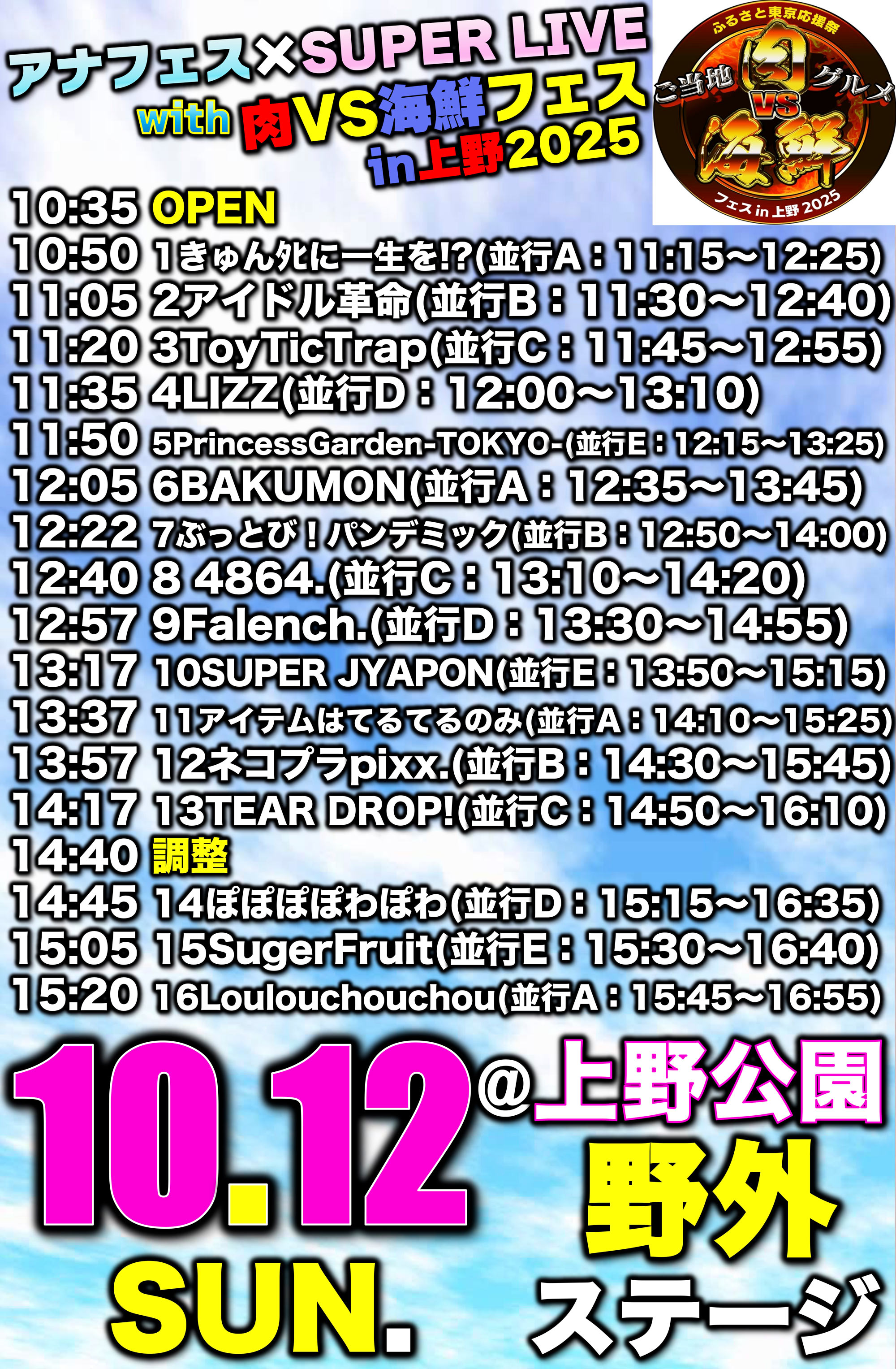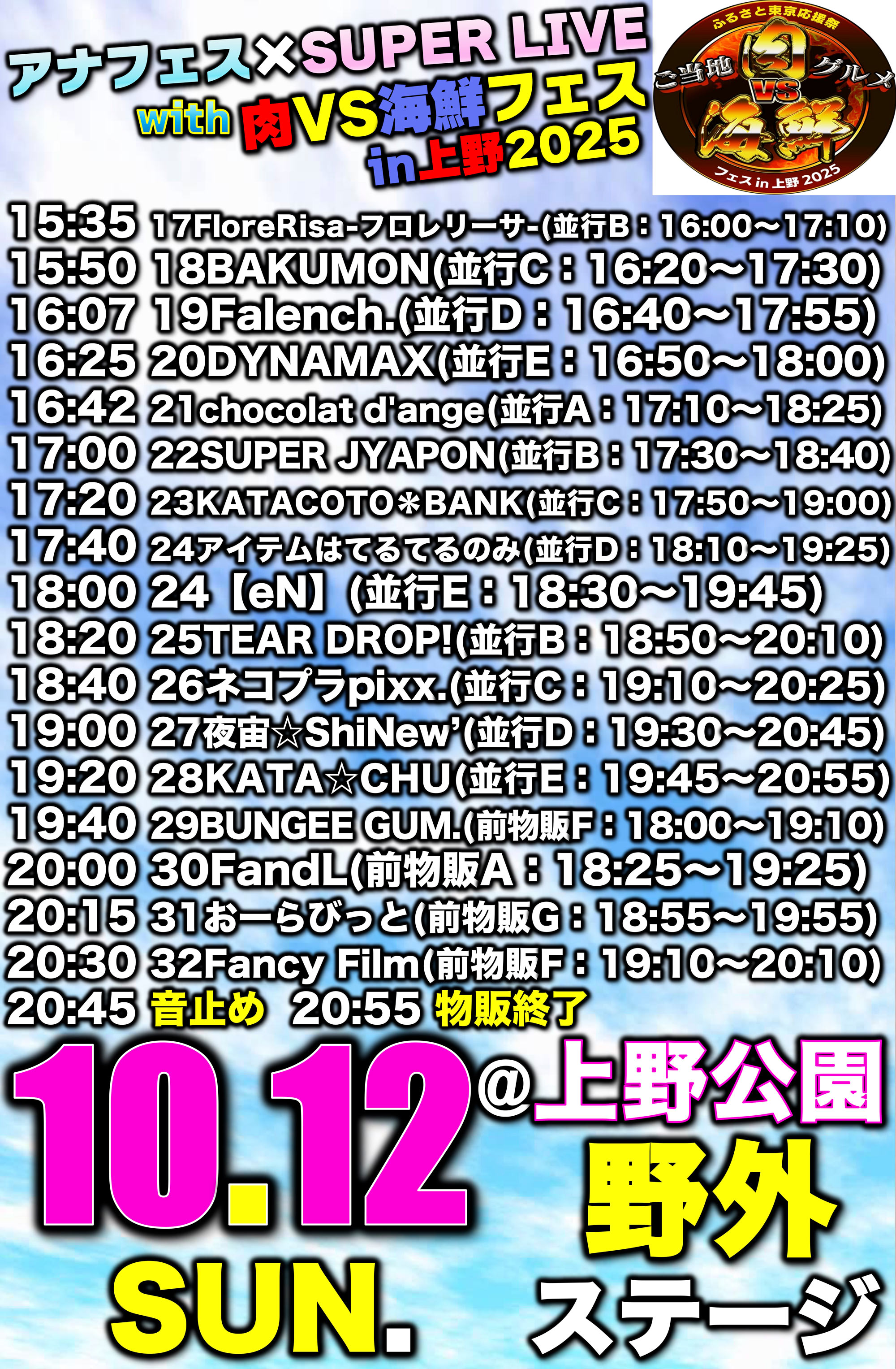 - イベントなど開始時間、終了時間が変更になる可能性もございますので、予めご了承ください。